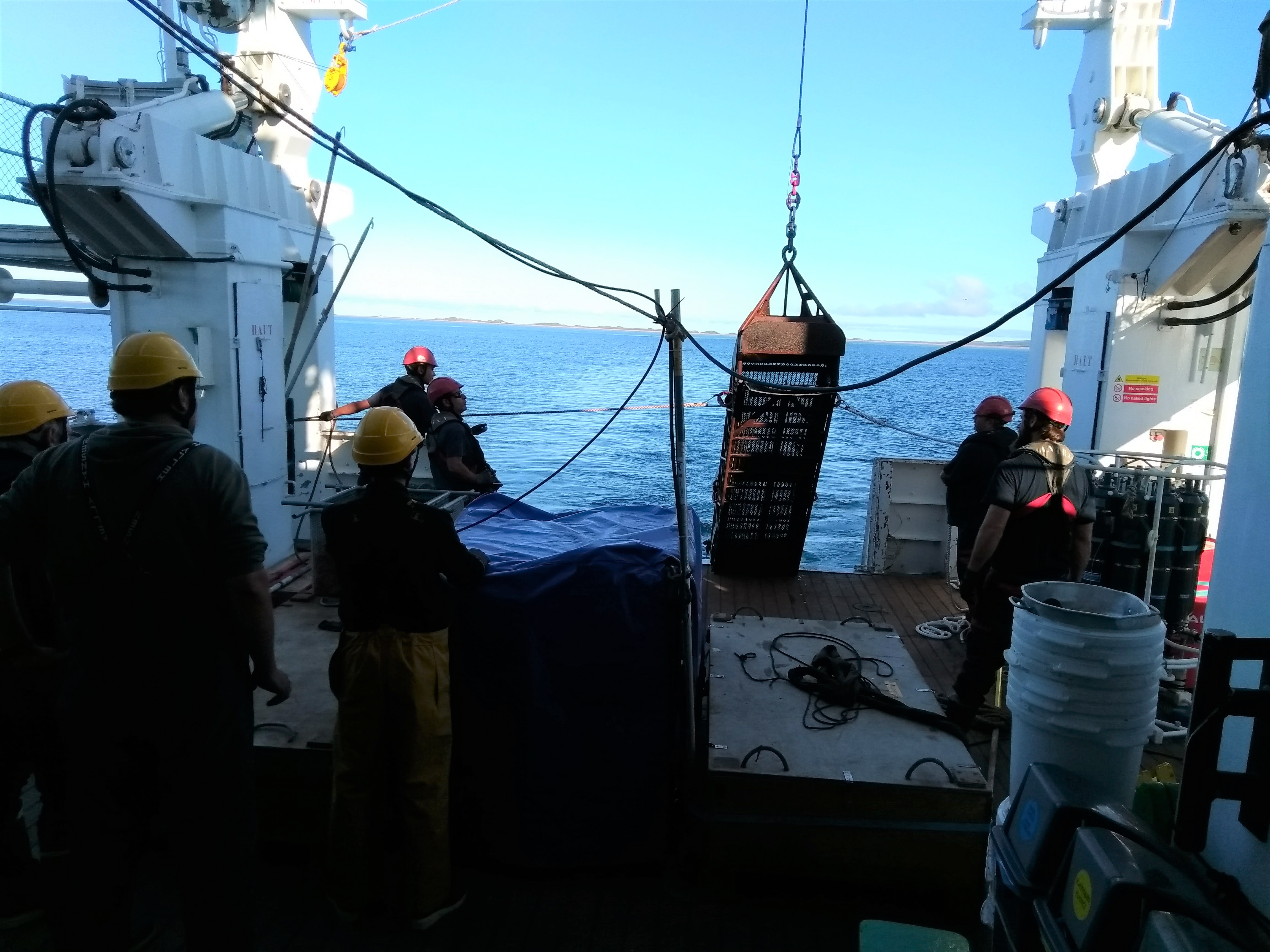 Sampling ocean quahog (Arctica islandica) and Atlantic sea scallop (Placopecten magellanicus) in Saint-Pierre-et-Miquelon (France).
